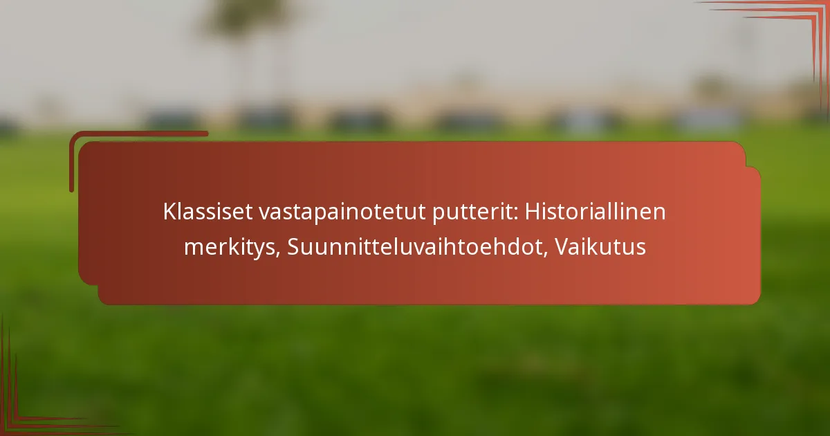 Klassiset vastapainotetut putterit ovat tärkeässä asemassa golfin historiassa, vaikuttaen sekä varusteiden suunnitteluun että pelitekniikoihin. Niiden ainutlaatuinen painojakauma parantaa vakautta ja hallintaa, mikä tekee niistä monien golfaajien suosiman valinnan vuosien varrella.